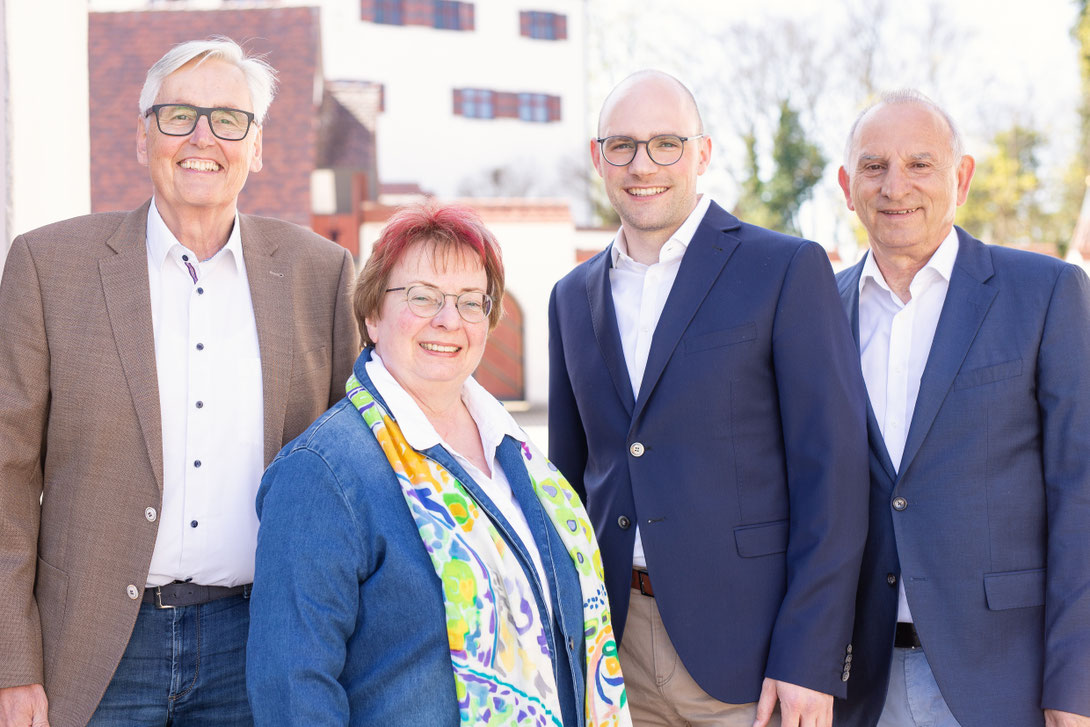 Raphael Gerhardt mit Horst Galgenmüller (UWG, 2. Bürgermeister der Stadt Leipheim), Brigitte Mendle (Bündnis 90/Die Grünen) und Walter Oberdorfer (SPD). Foto: Dorothee Wiedemann